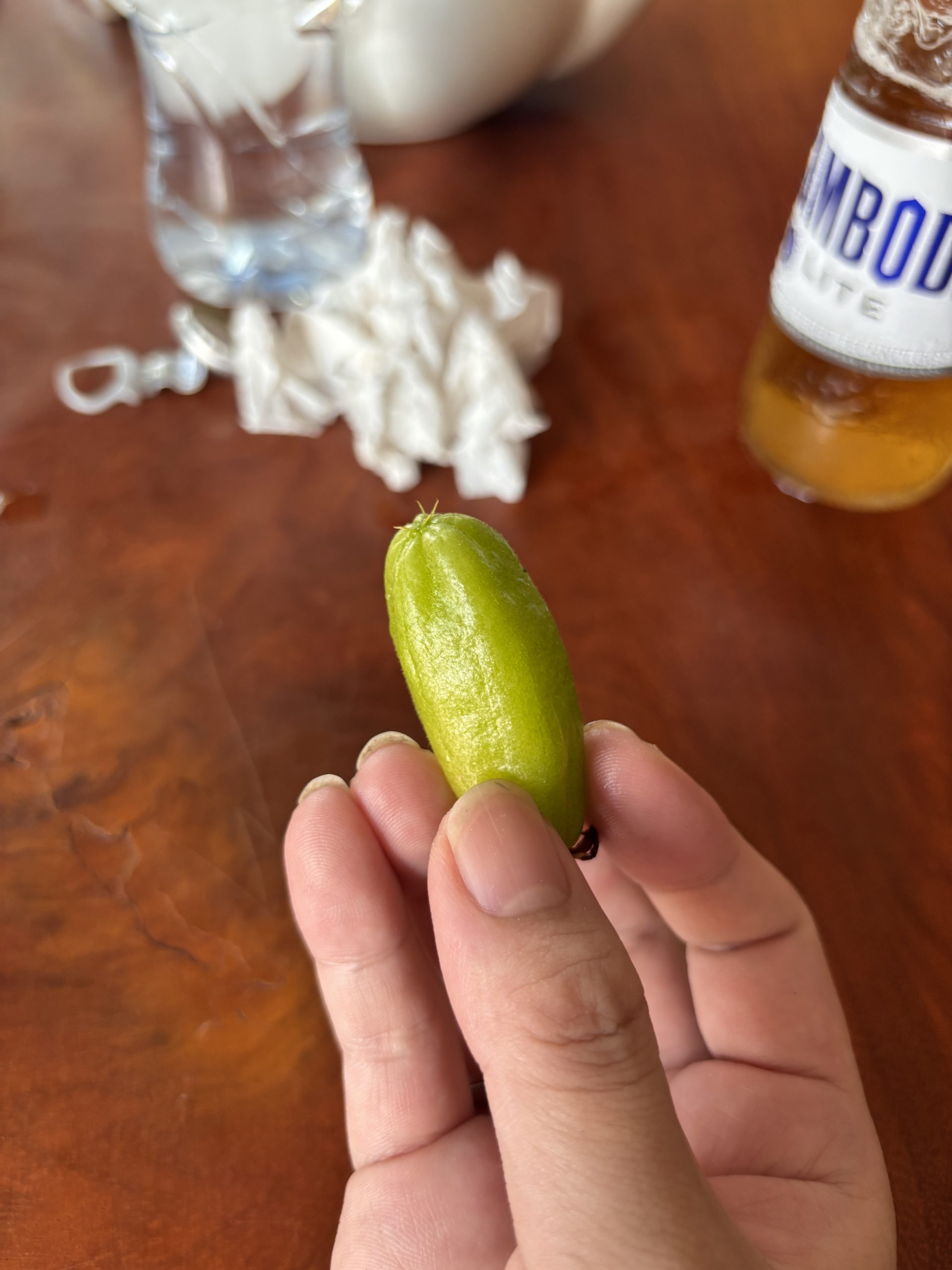 店員さん曰く、地元ではつまみとしてチリソースに付けて食べたり、酸っぱい料理の酸味付けに利用したりと用途は様々らしい。